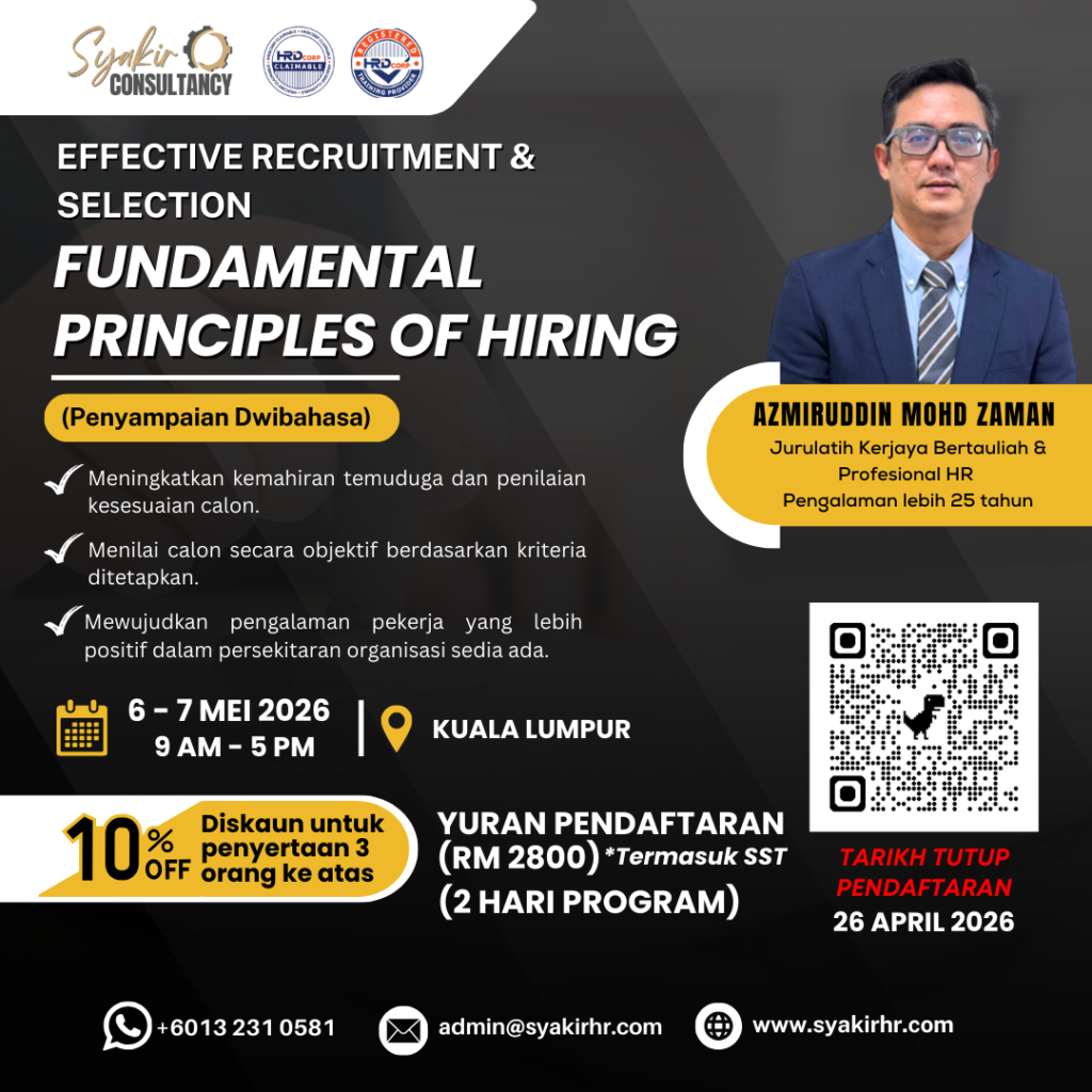 Able to lead Talent Management initiatives & guide Supervisors and Managers in implementing a clear and effective Talent Management Framework